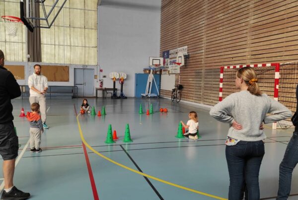 Le mois dernier, pour la toute première édition de notre séance Micro-Basket, nous avions accueilli 2 charmantes petites têtes blondes : Gaspard & Louis. Apparemment, cela leur a bien plu puisqu’ils sont revenus, et surtout ils ont fait des émules ! Une dizaine de futurs champions et championnes ont répondu présents pour cette deuxième séance. Jade, Judith, Léonie, Mathis, Mahé et Iris, toujours accompagnés d’Alexie et Charlie, ont profité d’une bonne heure d’activités ludiques avec leurs parents où chacun est reparti à nouveau avec des cartes NBA de collection.