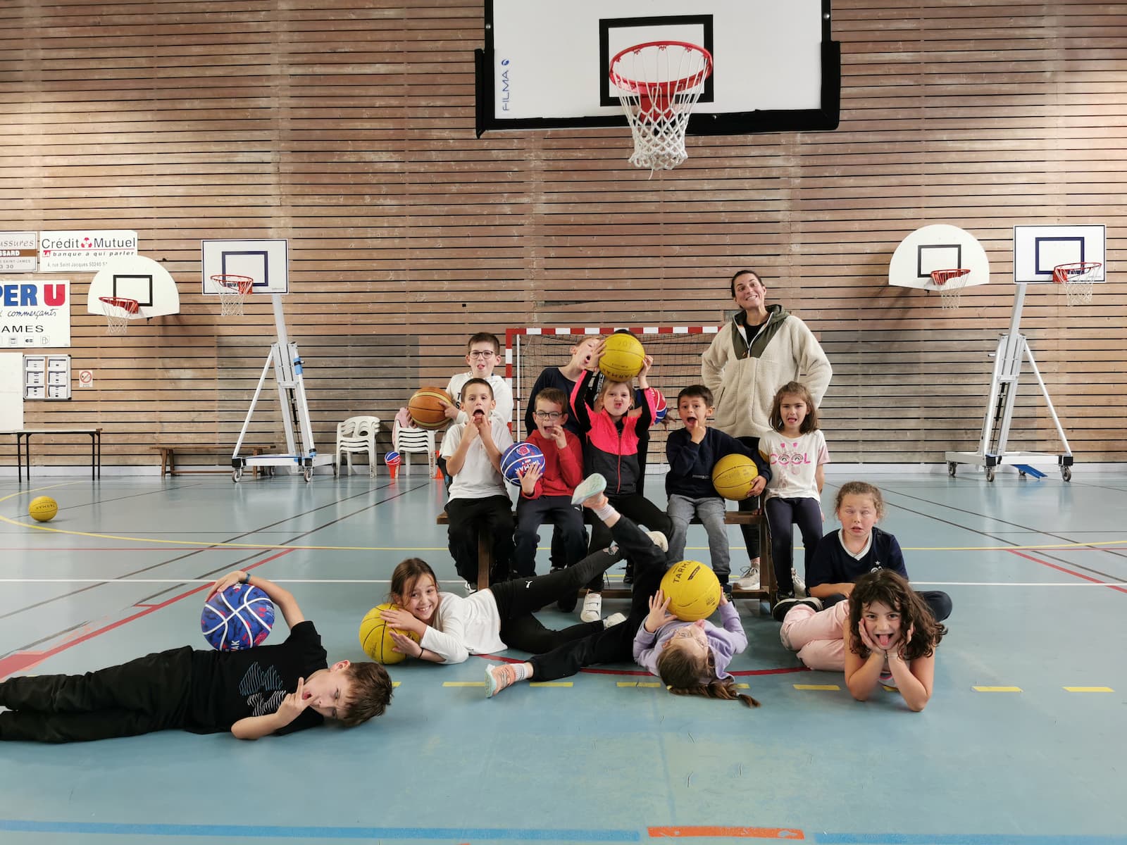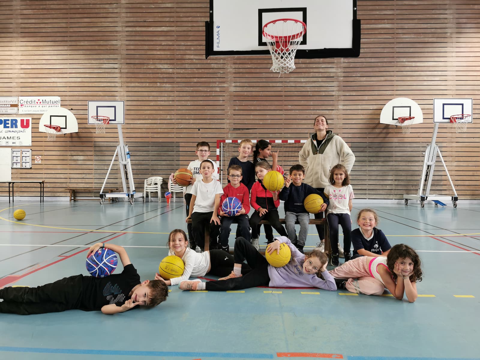 Pendant les vacances de la Toussaint, la salle omnisports de Saint-James a vibré quatre jours durant au rythme du basket et de la bonne humeur. Encadrés par Marc, éducateur sportif du club, et Émilie, secrétaire et joueuse des Seniors Filles, pas moins de soixante jeunes basketteurs et basketteuses ont participé à ces stages placés sous le signe du jeu, du plaisir et du collectif.