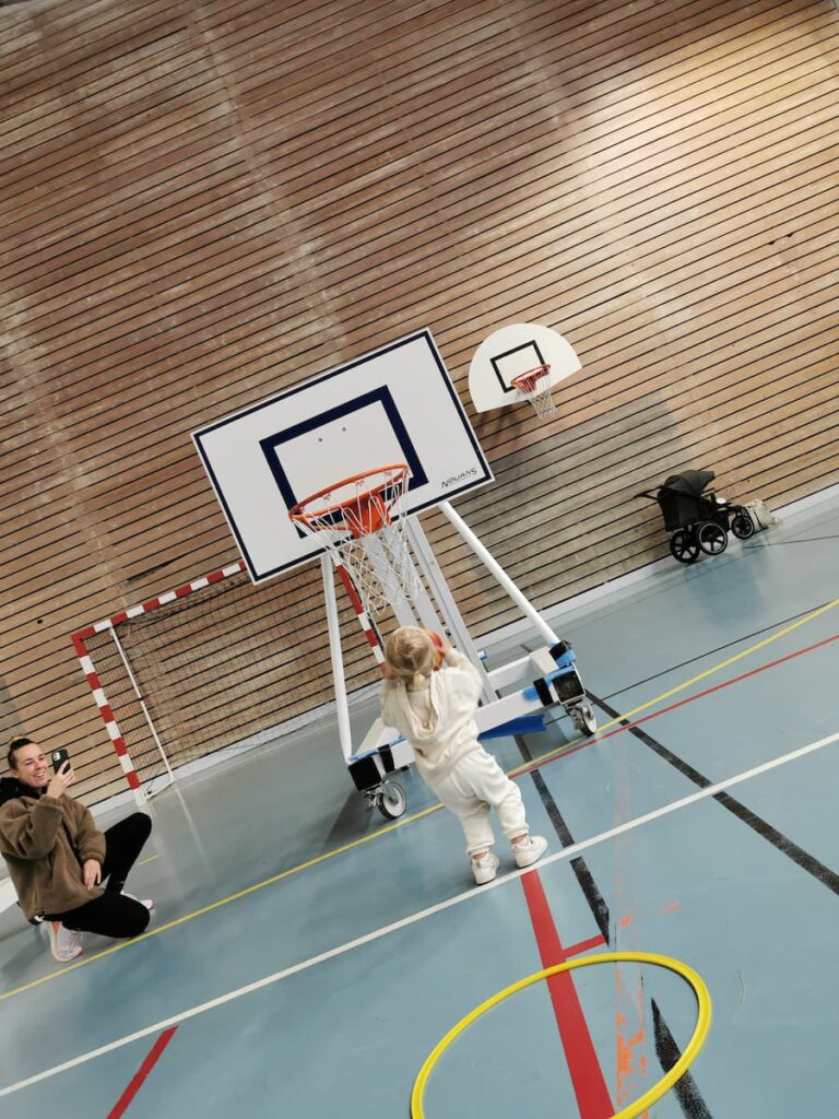 Elles ont toutes les deux réussi leurs premiers paniers, sous les regards attendris de leurs accompagnateurs… même si Margaux n’a pas tellement apprécié que Marc la prenne en photo (le caractère de sa Tata très certainement ! ^^).